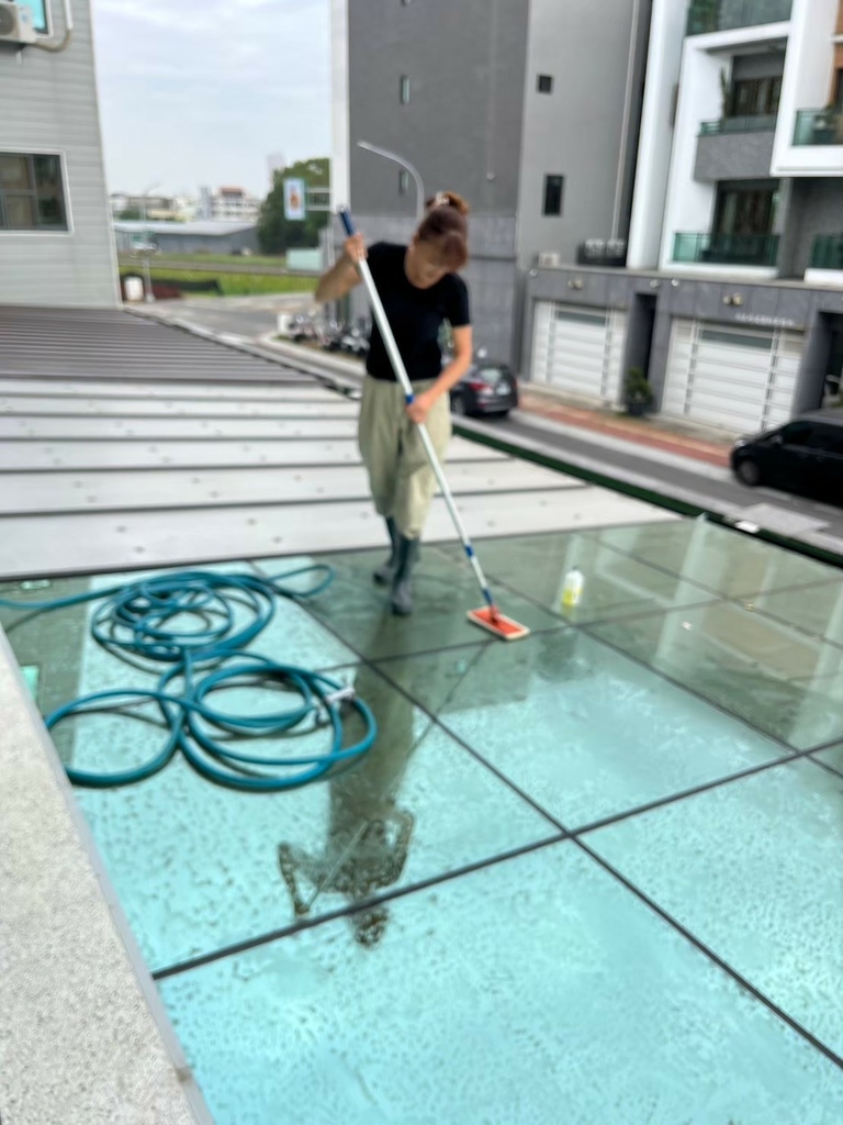 上到二樓看到連遮雨棚都出去清潔,真的是把我嚇出一身冷汗!